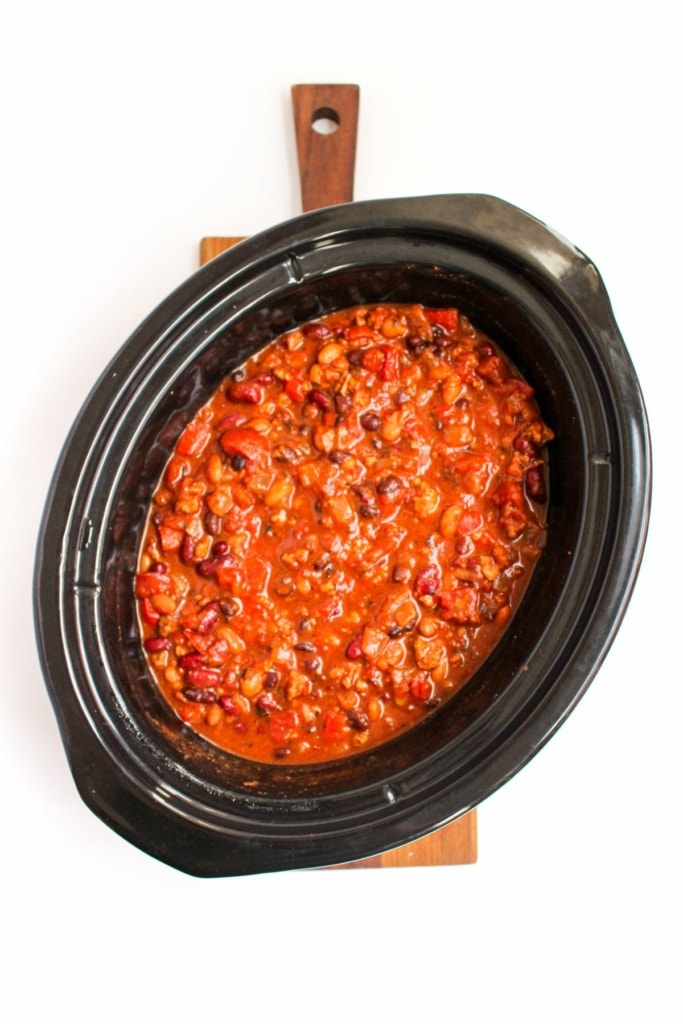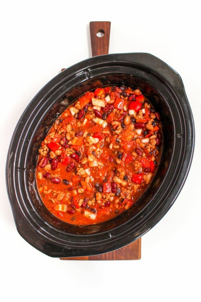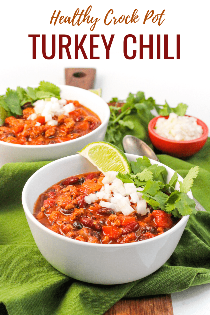 This healthy crockpot turkey chili is packed with nutrition and flavor. It freezes well, too, if you want to save some for later!