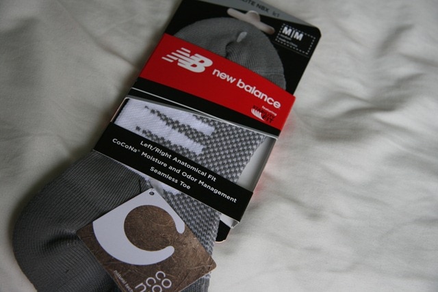 The run was also fun because I had some new gear to test out. While in the middle of studying on Wednesday, I heard a knock at the door, and was excited to find a fun package from New Balance! As I announced awhile ago, I’m running the Reach the Beach Relay race in May with a bunch of other bloggers, and New Balance is our sponsor. They sent all of us on the team some fun new running gear and accessories to enjoy as we continue our training!