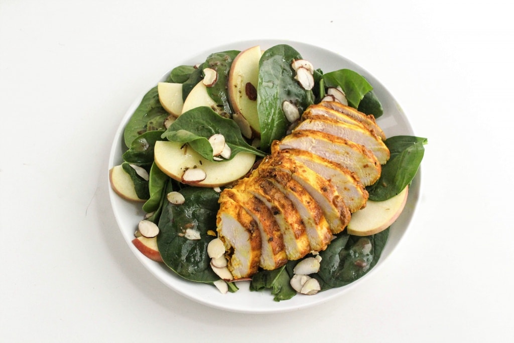 Slice and serve over spinach, sliced apples, sliced almonds, and a drizzle of oil and vinegar! Enjoy a roll on the side (or add some grains to the salad) to make this meal more filling.