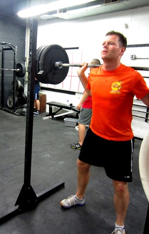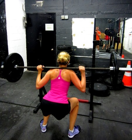 Anyway! Matt and I had a fun workout at CrossFit Arlington earlier this week. We hadn’t been in a little while since we’ve been out of town a lot, so it was great to get back. After doing our warmup (3 rounds of: 1 building lap, 12 toe touch burpees, 12 kettlebell swings), we got into our strength practice of the day: back squats!