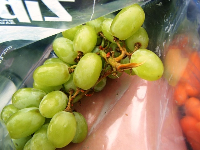 I ended up demolishing all of it throughout the day! The apple and the nuts were a mid morning snack, and the carrots, grapes, and sandwich were eaten during our lunch break: