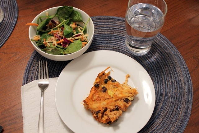 But what do you know? It was actually really good. 🙂 Especially with a little hot sauce on top (for him)! We also had some salad on the side.