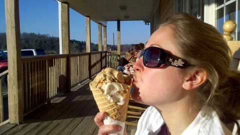 What food makes you happiest? For me, it totally depends on the day! Sometimes it’s a burger and fries and sometimes it’s a huge salad. But a drippy ice cream cone on a hot summer day while out having an adventure – that pretty much always takes the prize. <3