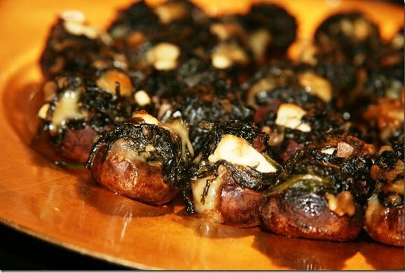 - Arrange mushrooms in baking dish. Divide filling mixture evenly among them. (At this point the mushrooms can be covered and stored for several hours in the fridge until your guests arrive, if necessary!)