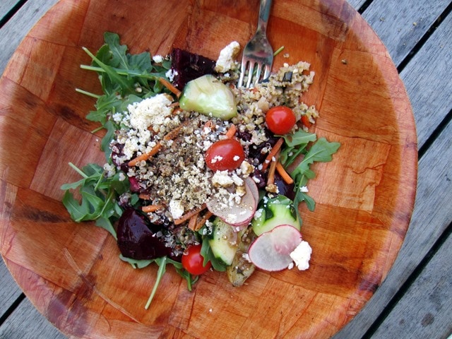 On our way back from the hike, we stumbled upon this complete gem: the Earthbound Farm Stand + Café! I <3 Earthbound Farm, and after so much travel lately I’ve been craving lots of fresh veggies, so this was perfect! An organic salad bar, fresh juice, coffee bar… this is my kind of place. 🙂