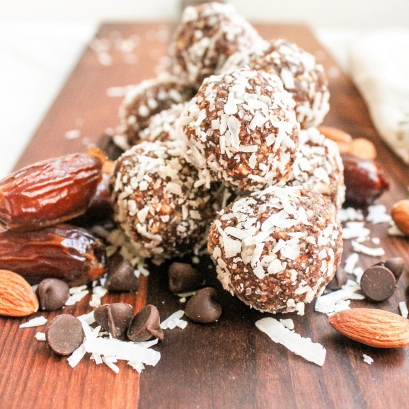 The full chocolate coconut date balls recipe is at the bottom of this post. Enjoy!