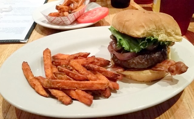 When we got back, all of us hung out at our place for awhile and enjoyed a beer, and then it was time for some serious food. The only thing that would do was clearly Ray’s Hellburger. Best burger in the DC area, in my opinion. Thick and juicy and really high quality meat/ingredients, too. I had it topped with mushrooms and caramelized onions, and bacon for good measure. Plus some sweet potato fries on the side. Don’t worry – I had an unpictured salad to start, too. Balance, my friends, balance. 🙂