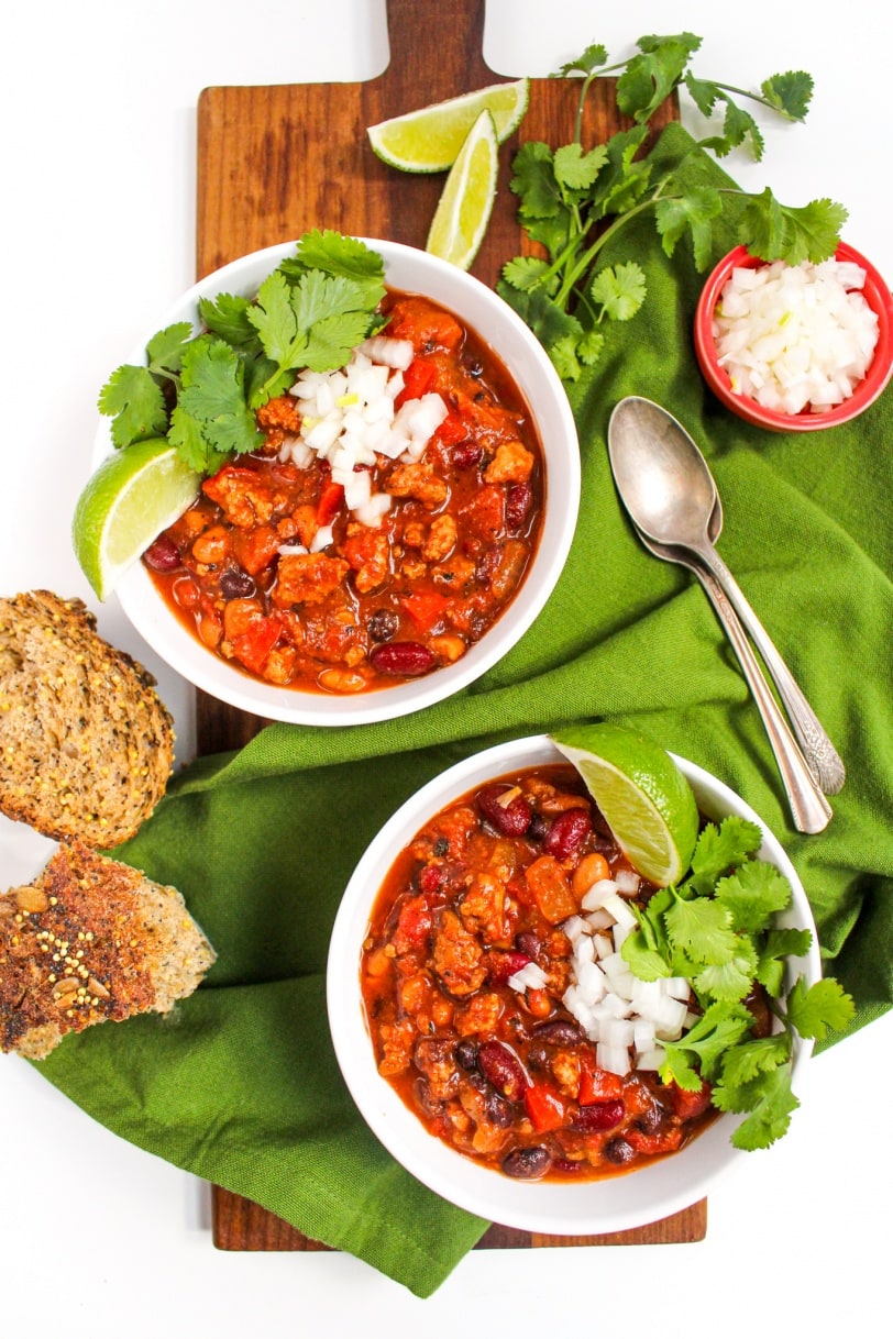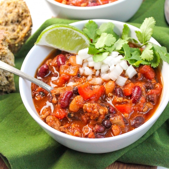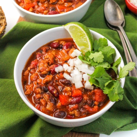 This healthy crockpot turkey chili is packed with nutrition and flavor. It freezes well, too, if you want to save some for later!