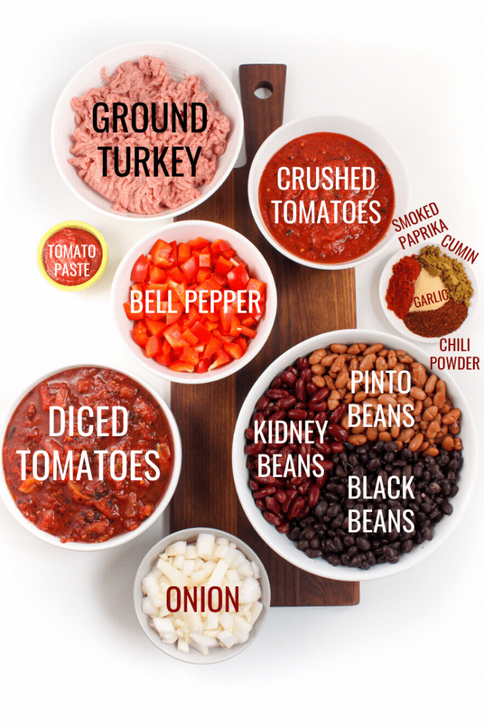Here are the ingredients you’ll be working with to make this slow cooker turkey chili recipe come to life!