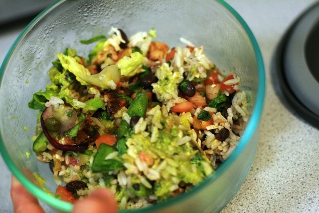 Plus half of a leftover chicken and black bean burrito bowl from Chipotle! Matt and I kicked the soccer ball around for a couple hours on Monday night and by the time we got home and showered, it was already 8:30! He LOVES Chipotle and offered to pick it up for us… clearly I couldn’t refuse 😉