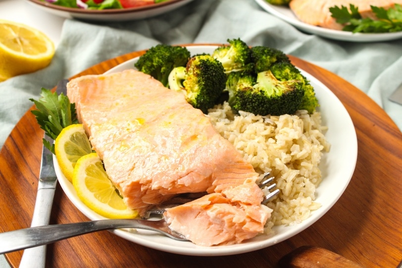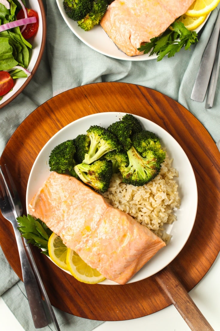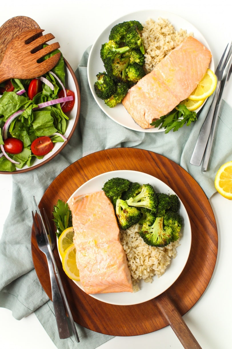 Just 3 ingredients and boom: perfect, tender salmon. Guaranteed to be delicious. Plus, it’s quick and pretty hands off – perfect for a busy weeknight dinner!