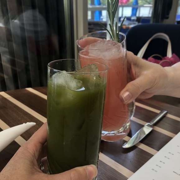 We started with the drinks above (green juice for me, watermelon juice for my mom – both delicious), and then we got some Prosecco too. 😉