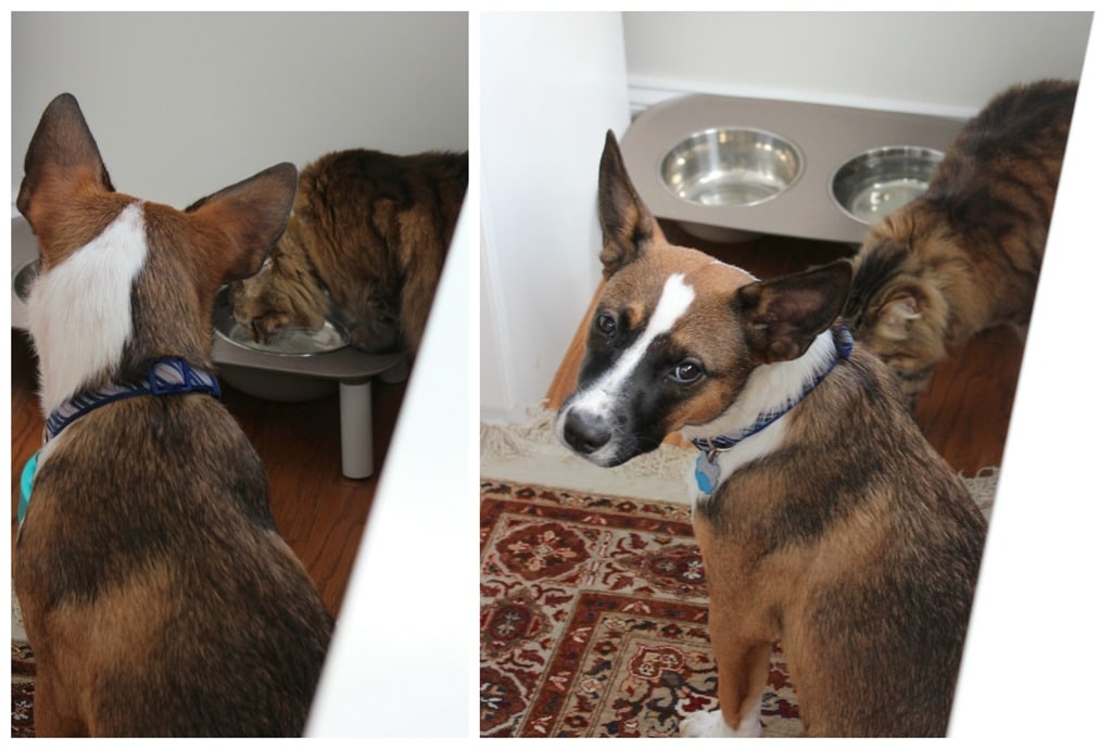 On the home front, Zara has been getting more and more bold and comfortable around our new puppy Ashe! She’s randomly been obsessed with drinking the dog’s water instead of her own fresh water – too funny. Here are some pictures of Ashe watching her drink from her bowl like “what the heck is this?!” Lol!