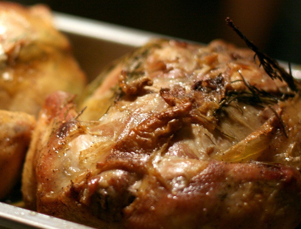 She roasted the chickens in the oven with a simple combination of olive oil, salt, pepper, and some rosemary sprigs. They came out PERFECTLY — super juicy, moist, and flavorful.