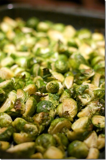 Remember my post about How to Make Brussels Sprouts Delicious? I followed that advice, and took it a step further and cut them into quarters so they roasted faster. 🙂 They tasted even better cut into smaller pieces, too, since that meant more olive oil/salt/pepper coating!
