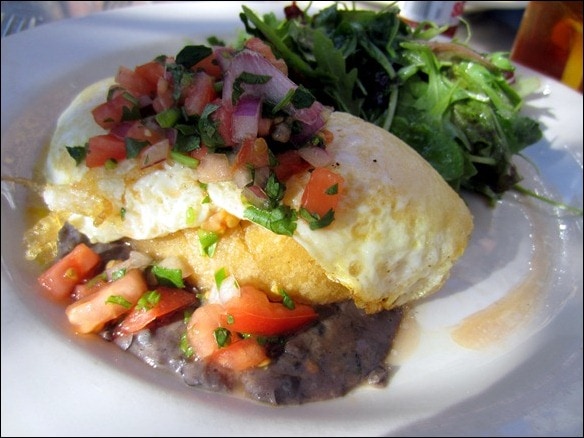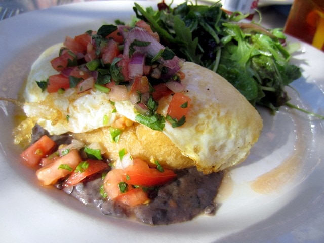 I had the Mexican-inspired option— a squash empanada with black bean puree, topped with two over easy eggs and some pico de gallo.
