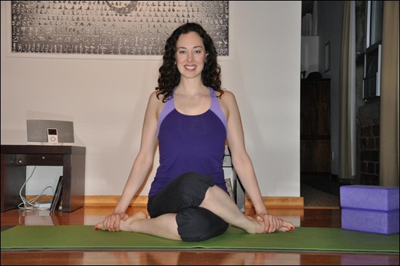 1) Butterfly/cobbler stretch (Baddha konasana):