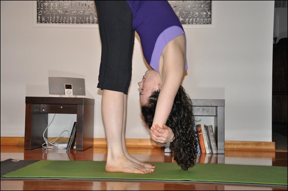 4) Standing forward fold with “ragdoll” arms (Uttanasana):