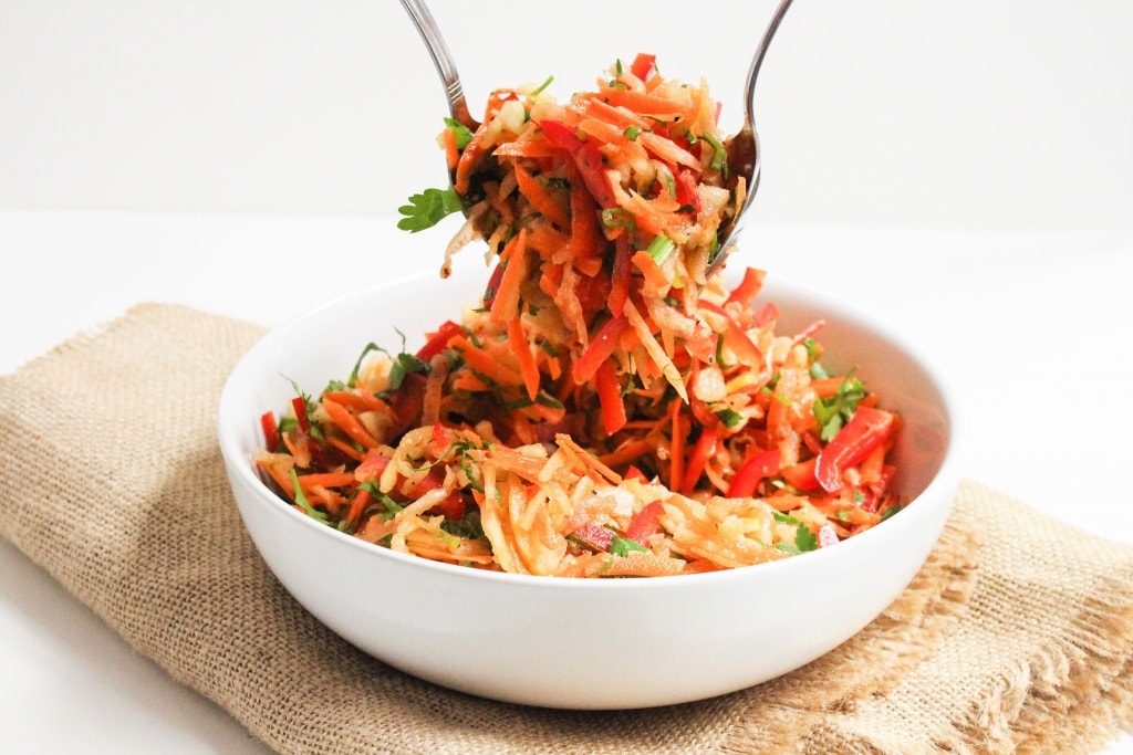This refreshing no mayo coleslaw is packed with veggies (like bell peppers), and is a refreshing side dish that’s perfect for any main!