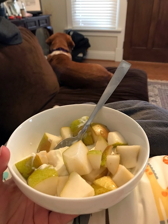 Love the combo of protein (yogurt/cottage cheese) and fiber (fruit)! The fruit is nice and hydrating, too, which is helpful because breastfeeding makes me really thirsty all the time. This also makes a great filling and quick breakfast – just add some granola or raw oats and seeds to the mix to amp up the volume a bit if you’re having it as a meal!