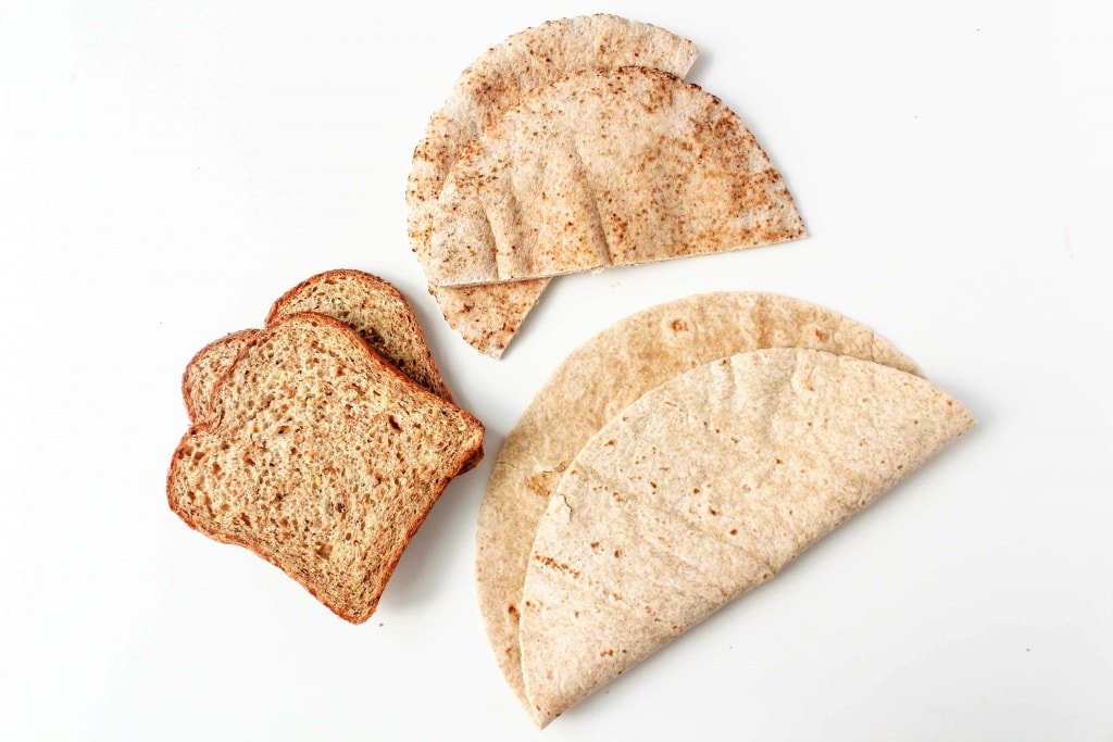 The base to any sandwich is the bread! I like switching it up between sliced bread, pita pockets, and wraps to keep things interesting. When you’re shopping for bread, make sure you pick up one that’s labeled 100% whole wheat (unless you need gluten free bread, of course) – breads labeled just “whole grain” or “multigrain” or “wheat” are often times mostly refined white flour with only a few whole grains thrown in.
