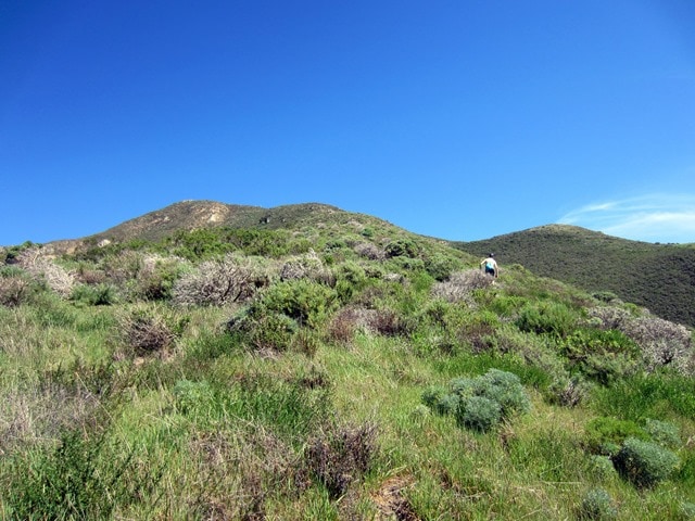After hiking for awhile, the trail kept getting less and less like a trail, and more and more like we were just hiking in bushes. Realizing that we had somehow gone off the beaten path but not feeling like going all the way back and around, we decided to just keep going and see what happened. We couldn’t get lost since we could see everything for miles, after all!
