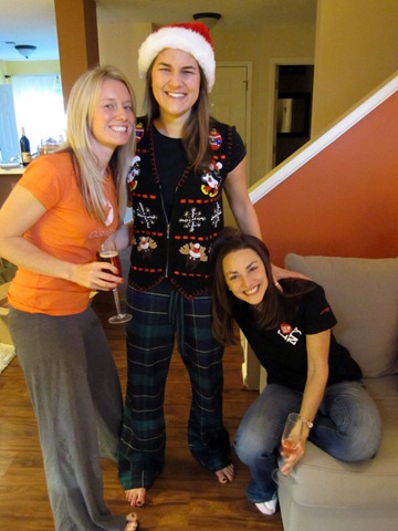As I mentioned, the grad school girls and I got together on Saturday for some festive celebrations in honor of the fact that our biochem exam was over! We all headed over to Elle’s (aka “The Clubhouse”) around 3 to begin the festivities. Comfy clothes were mandatory.