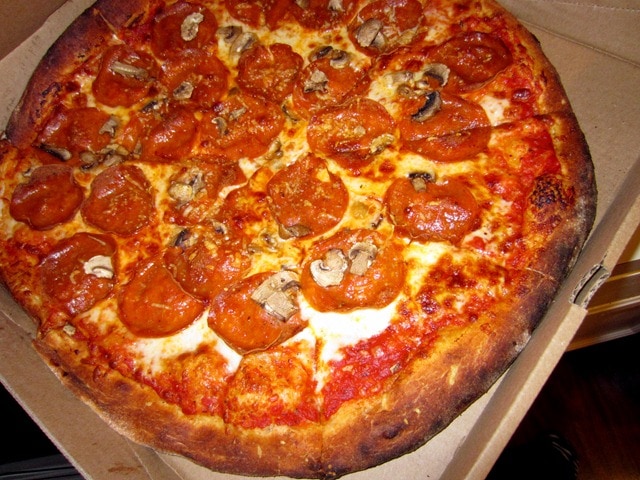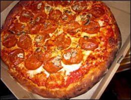 It was DELICIOUS — we got one veggie-tastic pizza and one with mushrooms and pepperoni. We demolished both. 🙂
