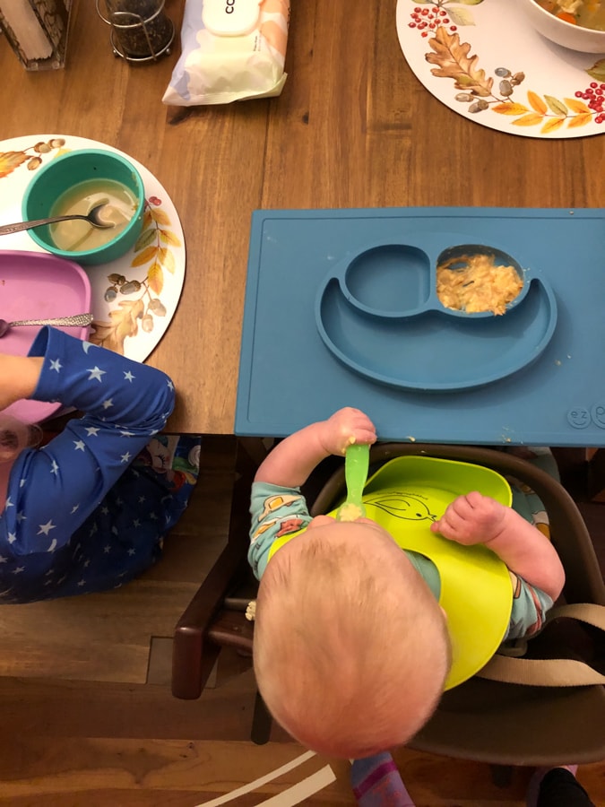 One last thing of note before I sign off: Wes has officially started solids and my goodness he is LOVING food. This boy can eat – he’s taking down a lot more actual food than Riese was at this age which has been interesting!