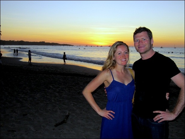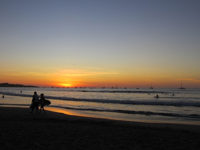 One of the most stunning sunsets was when we went into town for dinner one night with our new friends John and Diana (who you’ll remember we first met on the whitewater rafting trip in Arenal!). This was the beach in the nearby town of Tamarindo, which was a really cool surfing community.
