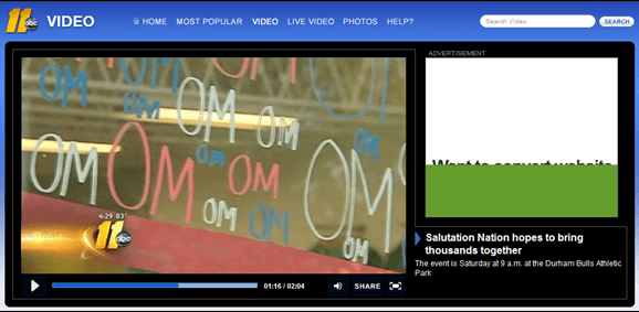 Just popping in quickly to share a fun video! Remember last week when I wrote about going to Lululemon in Raleigh and having the local ABC news crew come to film a promotion for Salutation Nation this Saturday? Well, the news story came out last night! I’m in the back row of the yoga class they are filming and you can see me clearly a few times, especially right at the end 🙂 Click on the picture below to see it!