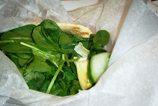 I’ve been to Fosters before but never had their lunch — it was delicious! I started with the Greek Grilled Cheese, which was a grilled pita stuffed with spinach, tomato, grilled onions, artichoke hearts, cucumbers, peppers, provolone cheese, and feta spread! Major yum (excuse the ghetto photos — I had my point and shoot and it hates being indoors)!