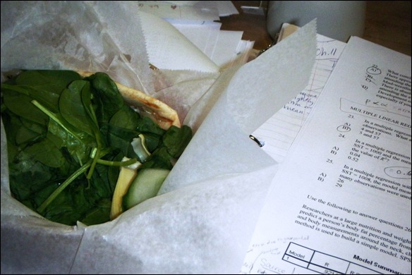 Since we were tired of campus, four of my grad school friends and I met up at a cute cafe in Chapel Hill called Foster’s Market to study Biostats! It was actually kind of fun — studying with others is WAY better than studying by yourself. More productive, too! We spent from about 9 a.m. til 3 p.m. at Fosters working on practice problems (and occasionally chatting, heh). As a reward for all the studying, we treated ourselves to lunch there, too! (Usually we all pack our lunches — I mean, we are in the nutrition program and all, heh. Plus… grad school = we are poor.)