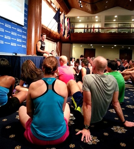 Tony is in town for the Beat the Deadline 5k tomorrow morning and arrived early to offer a workout to the public at the National Press Club. Those of us that are on “Team Chevy” for the race were lucky enough to be invited to a special hang out session with Tony before the workout. So cool to get to know him better!