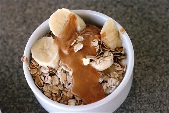 I find the instant oatmeal is too sweet on its own (and not filling enough), so I like adding raw plain oats to it to bulk it up and de-sweeten it a bit 🙂 And doesn’t everyone travel with almond butter? 😉