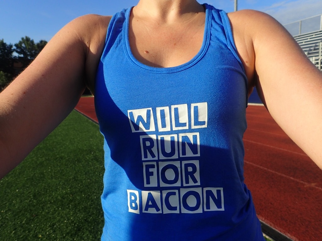 Tuesday – track workout! Mile repeats were on the agenda – SO HARD. At least my “Will Run for Bacon” tank came into play for the occasion – and it was a gorgeous, slightly cooler, lower humidity morning – finally!
