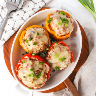 I love stuffed bell peppers. They’re surprisingly easy to toss together, but somehow end up looking fancy!