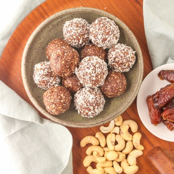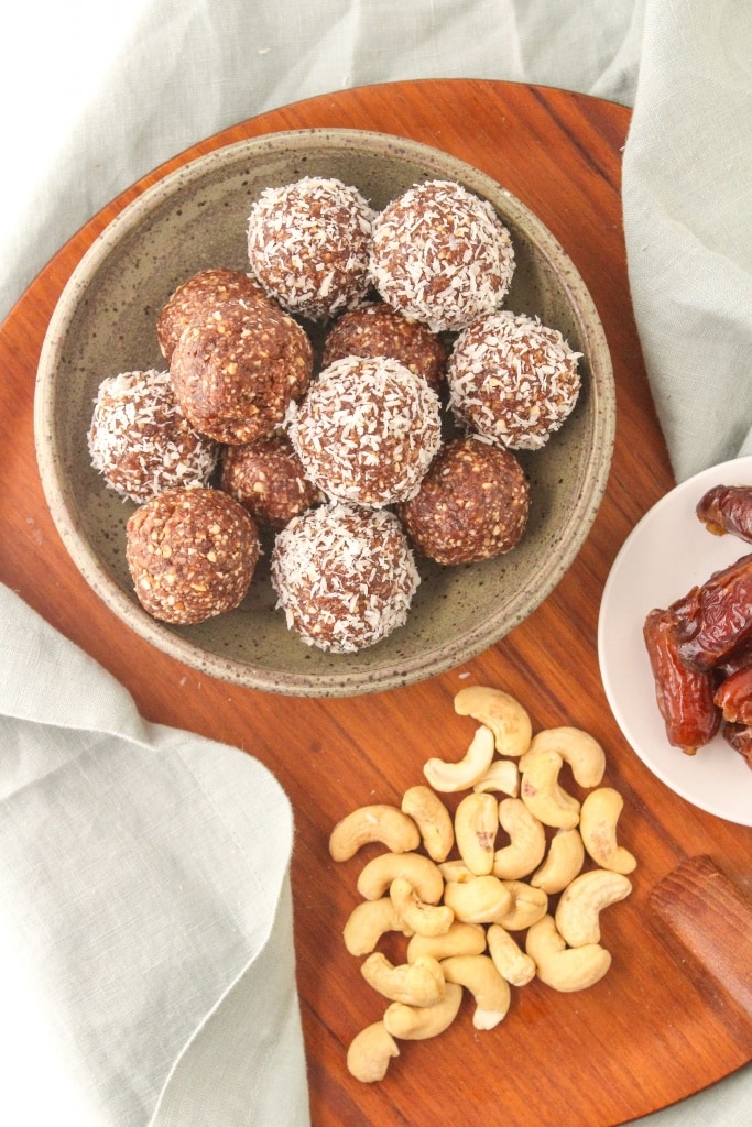 Cashews + Dates + Coconut + Cocoa Powder Energy Bites