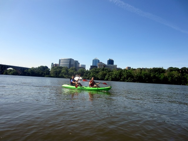 Hello, hello! Matt and I stayed in DC again this past weekend (crazy, I know!) and we were lucky enough to have another gorgeous couple days of weather. We made sure to take full advantage by doing errands via BikeShare, hanging out by our apartment pool (so awesome), having a BBQ with friends on Friday night and an outdoor sushi dinner with another friend on Saturday night, and on Saturday morning, Matt and I spent a few hours kayaking, biking, and running with the Roam Fitness OutRun Adventure crew!