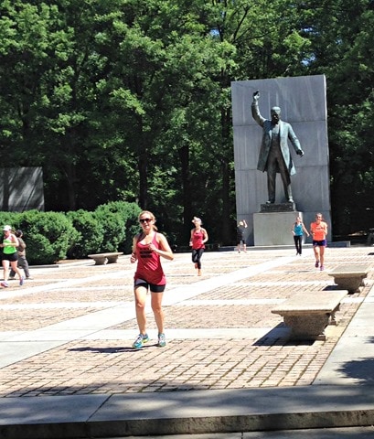 We left our bikes and helmets locked up at the base of the bridge to Roosevelt Island, then set off on foot for a little running and boot camping.