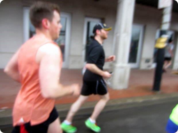 We spotted Matt’s parents cheering for us around mile 6 – so awesome to see them out there and a great burst of adrenaline, too! There was GREAT crowd support at this race, and lots of fun bands along the course, too. That always helps with morale!