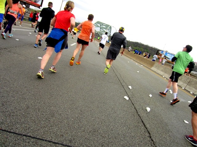 Around mile 11 we saw signs for the half marathon/full marathon split. Hooray! I knew that would thin the crowds a bit.