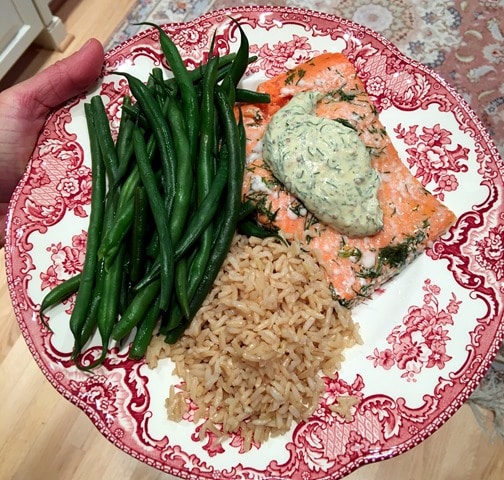 I took home the leftover piece of salmon and enjoyed it for lunch yesterday while working from home. Just as good day two!