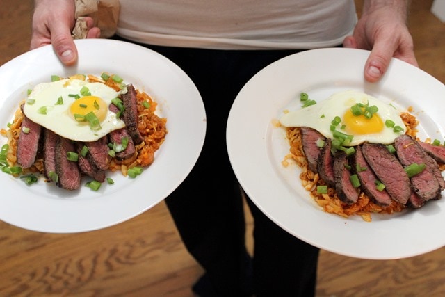 We’ve also been enjoying some good Blue Apron eats, as usual. One of our faves last week was this awesome steak and eggs with quick kimchi fried rice.