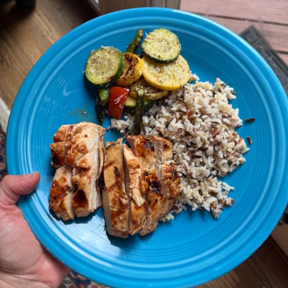 Another night we enjoyed my Watermelon Lime Grilled Chicken which is another old family favorite. Hadn’t made that in a long time and it was as good as I remembered! Plus some Oven Roasted Zucchini and Squash and asparagus and wild rice.