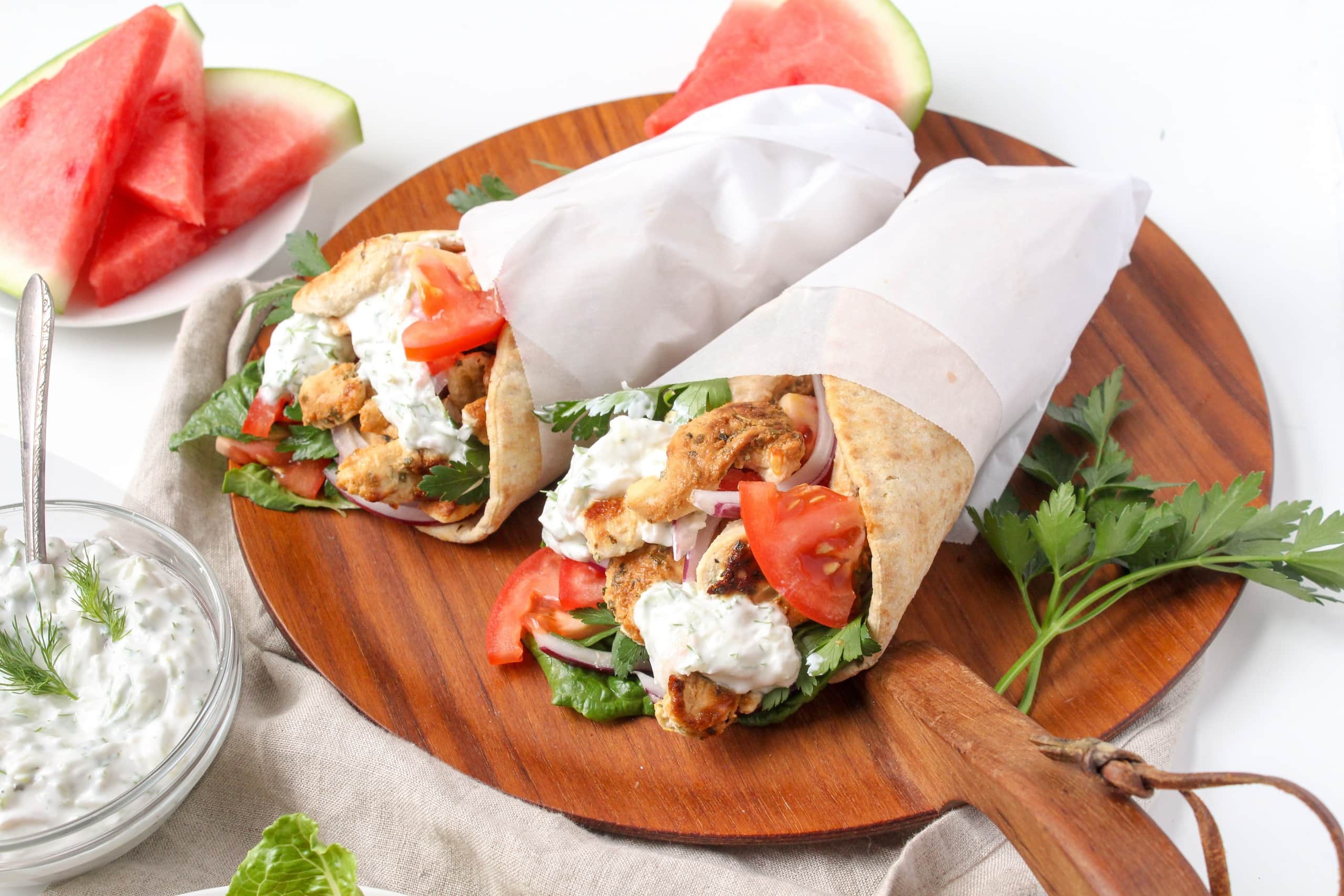 Mediterranean-inspired yogurt sauce is one of my favorite ways to add flavor to wraps, sandwiches, and bowls. These chicken gyros with tzatziki, spinach, and fresh tomatoes are no exception!