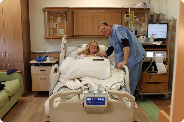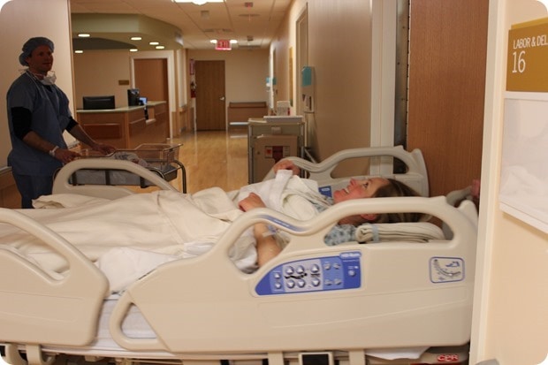 Matt woke me up at 4 a.m. with breakfast in bed (I wasn’t allowed any food or drink for 8 hours before the scheduled C section at noon), and after snoozing a little longer (as best I could, anyway, given the early labor contractions I was feeling) we took one last “just the two of us” walk that morning, finished packing up our stuff, and headed to the hospital for a 10 a.m. arrival as instructed.