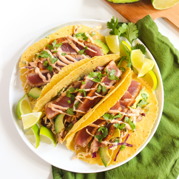 You’ll find the full seared ahi tuna tacos recipe at the bottom of this post. Enjoy!