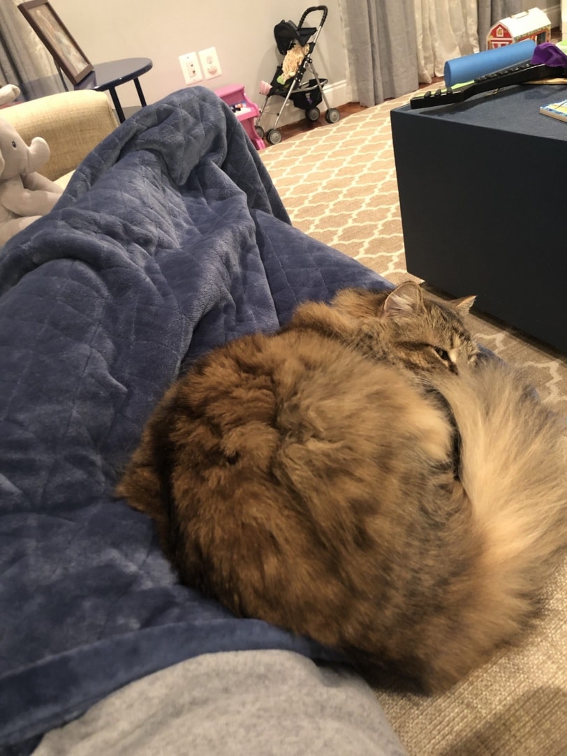 First, for my Zara fans: here we are cozy on the couch one night this week after Riese went to bed.