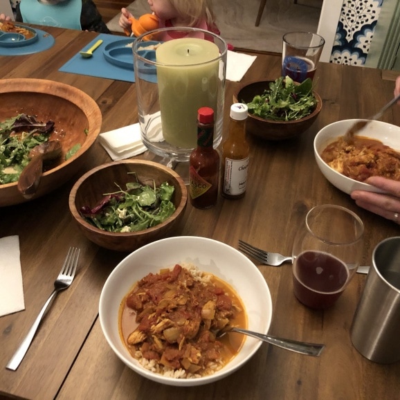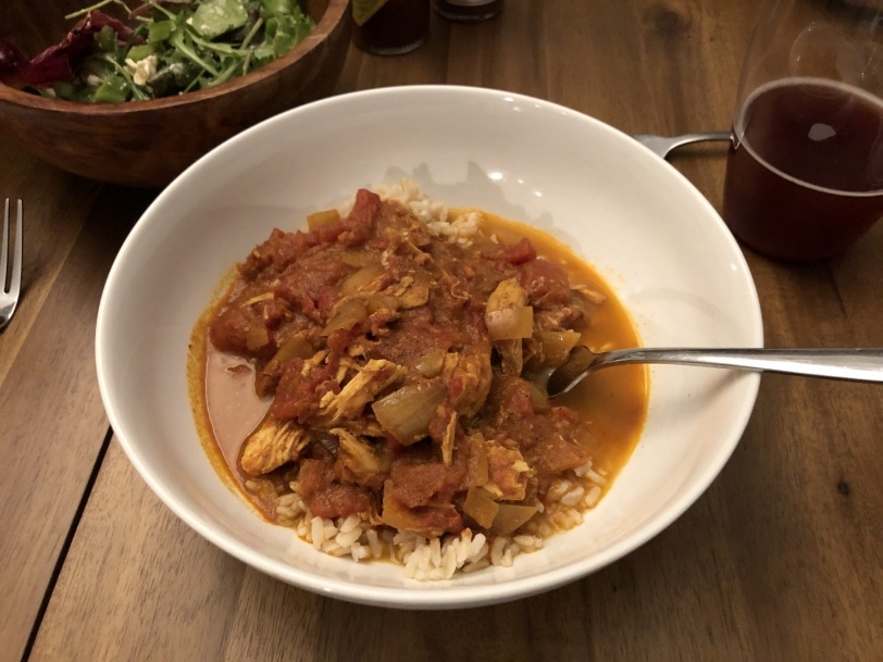 On the menu was my Slow Cooker Chicken Tikka Masala, which I prepped ahead a few weeks ago with my friend Jackie during our meal prep mini-party (aka just the two of us, while Matt and her husband and the kids hung out). We just put all the raw recipe ingredients into a ziplock bag, then froze it for later.